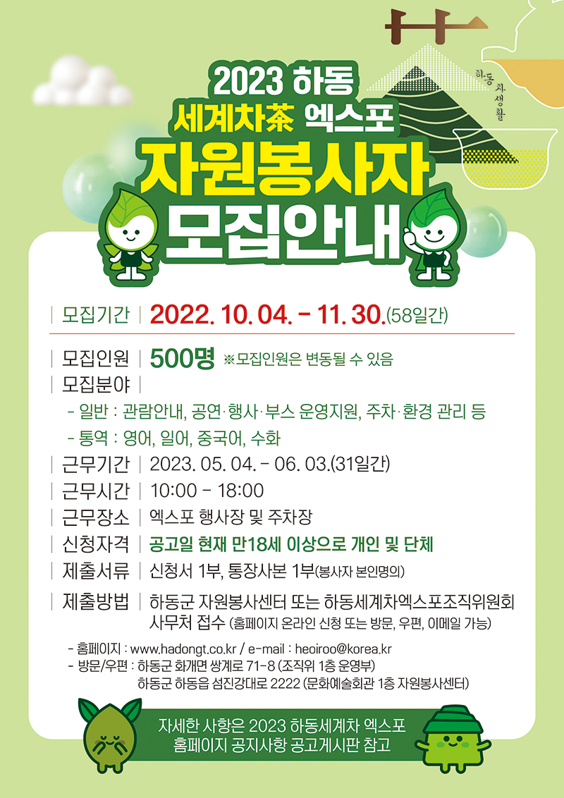 '하동군자원봉사소식 > 자원봉사자모집' 카테고리의 다른 글